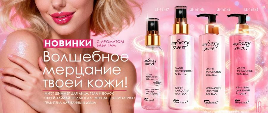 Нежное молочко для тела с ароматом бабл гам, шиммером и феромонами Sexy Sweet!