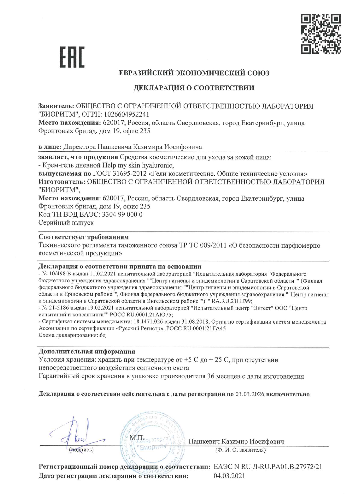 Крем - гель дневной HELP MY SKIN HYALURONIC